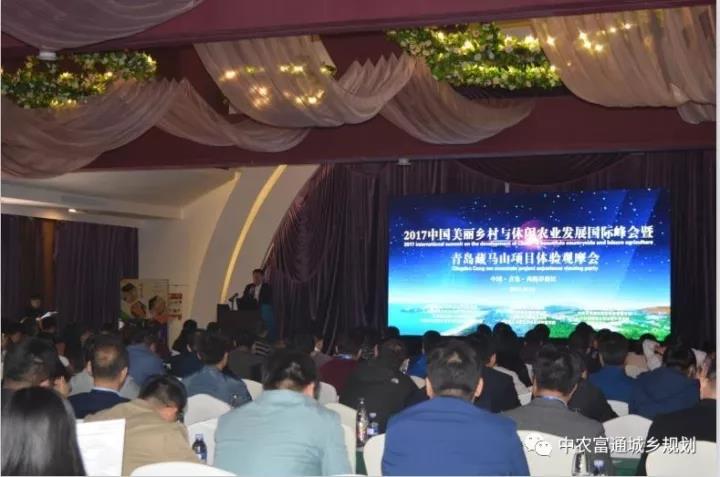 2017年10月13日-15日中国美丽乡村与休闲农业发展国际峰会暨青岛藏马山项目体验观摩会在藏马山旅游度假区蓝莓度假酒店盛大开幕。来自美国、巴塞罗那的国际嘉宾以及国家发改委城市和小城镇改革发展中心副主任乔润令、青岛西海岸新区副区长隋斌、藏马山旅游度假区常务副组长刘增爱、住建部村镇司乡村规划研究中心李亚楠等政府领导,国内资深旅游规划专家、乡建艺术家、旅游策划专家、特色小镇和田园综合体系统解决方案服务商和相关从业人员等近200人参加了此次活动。北京中农富通城乡规划设计研究院受邀参加了本次峰会,围绕休闲农业与美丽乡村规划建设做了主旨演讲。
