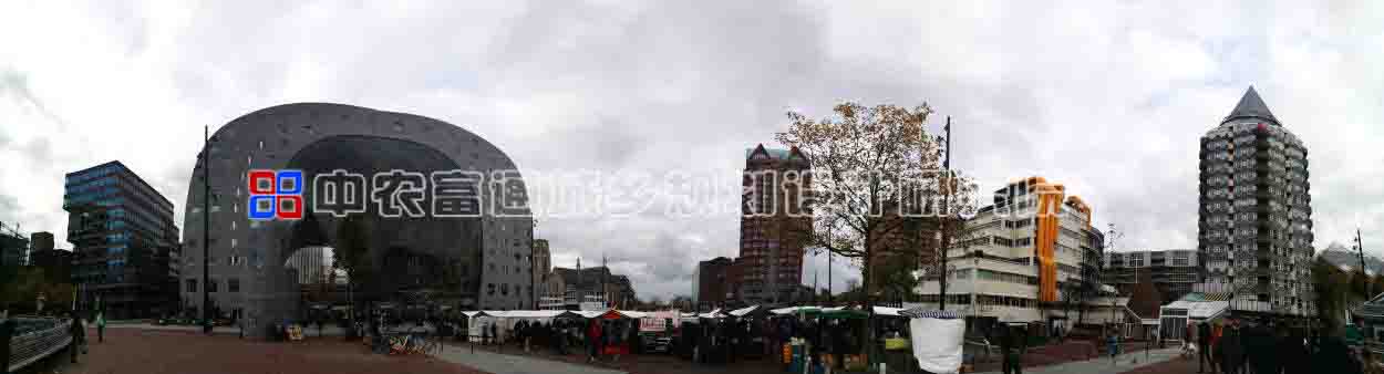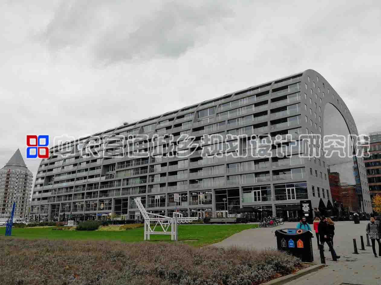 火车站不远处就是Markthal市集,这是荷兰的第一家室内农贸市集,据说,2014年10月份该市集的开幕式是由荷兰女王Máxima主持的,由此可见Markthal对于鹿特丹的重要性。我们此行重点对这座由荷兰MVRDV建筑设计事务所设计的拱形农贸市集进行了考察。