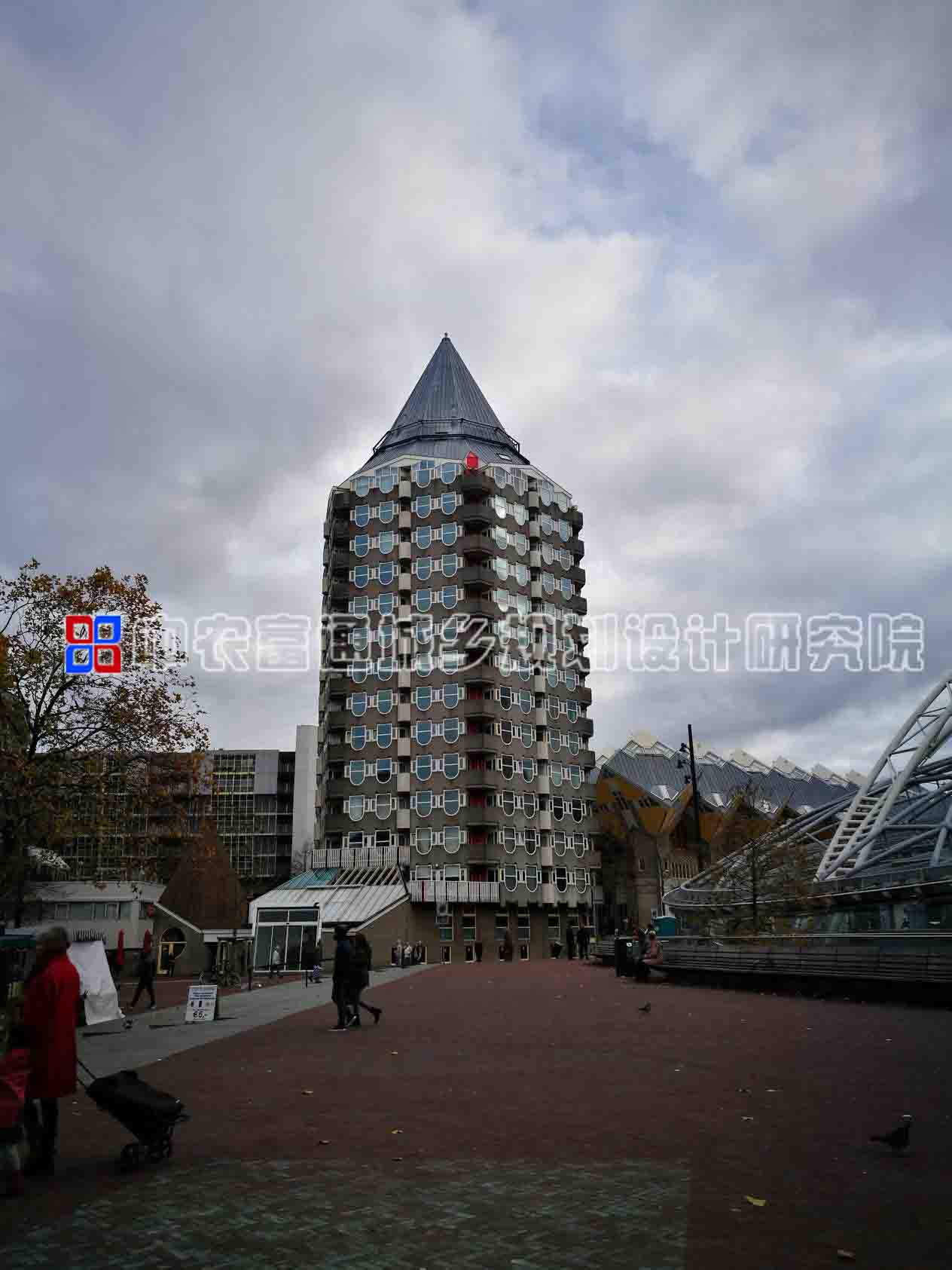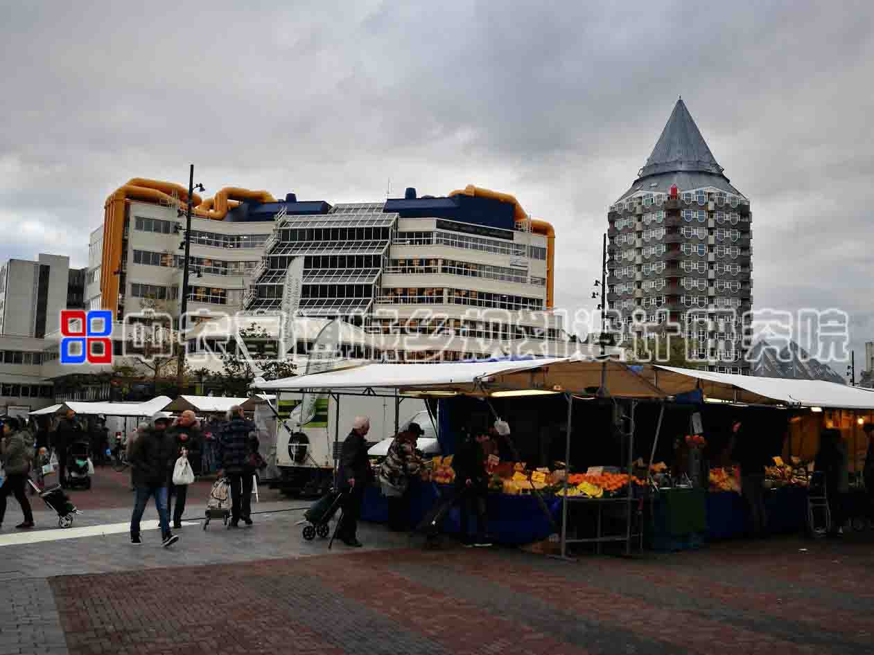 走出Markthal,外面还有露天集市,不远处是一座有着“铅笔头”之称的大楼,以及鹿特丹另一个地标建筑——立体方块屋。