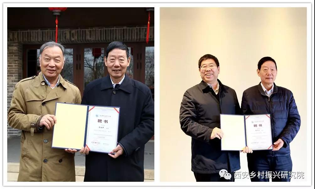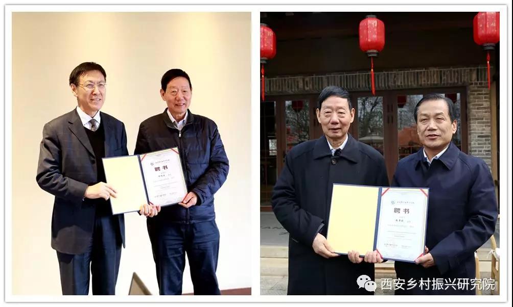 顾问聘任仪式上,西安乡村振兴研究院名誉院长、西北农林科技大学原校长孙武学,向中国农业大学原校长柯炳生,中国农业电影电视制作中心党委书记赵泽琨,农业农村部原信息中心主任郭作玉,中国人民大学农业与农村发展学院教授温铁军,西北农林科技大学中国农业历史文化研究所所长樊志民,农业农村部农村经济研究中心科研管理处处长徐雪,农业农村部中国村社发展促进会秘书长杨秋生,农业农村部《中国村庄》杂志副主编董献华,新希望六和股份有限公司副总裁王维勇,北京中农富通城乡设计研究院总经理李国新等12位嘉宾颁发了《西安乡村振兴研究院顾问聘书》。西安市农业农村局局长倪广天、副局长李岁会,天朗控股集团董事长孙茵、副总裁周岗,西安乡村振兴研究院理事长贺小龙等领导共同见证了聘任仪式并合影留念。