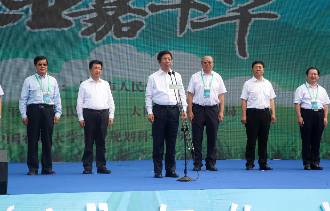 随后山西省委常委、大同市委书记张吉福宣布“大同市农业嘉年华开园”,由其他领导与各界代表一同浇灌金沙。