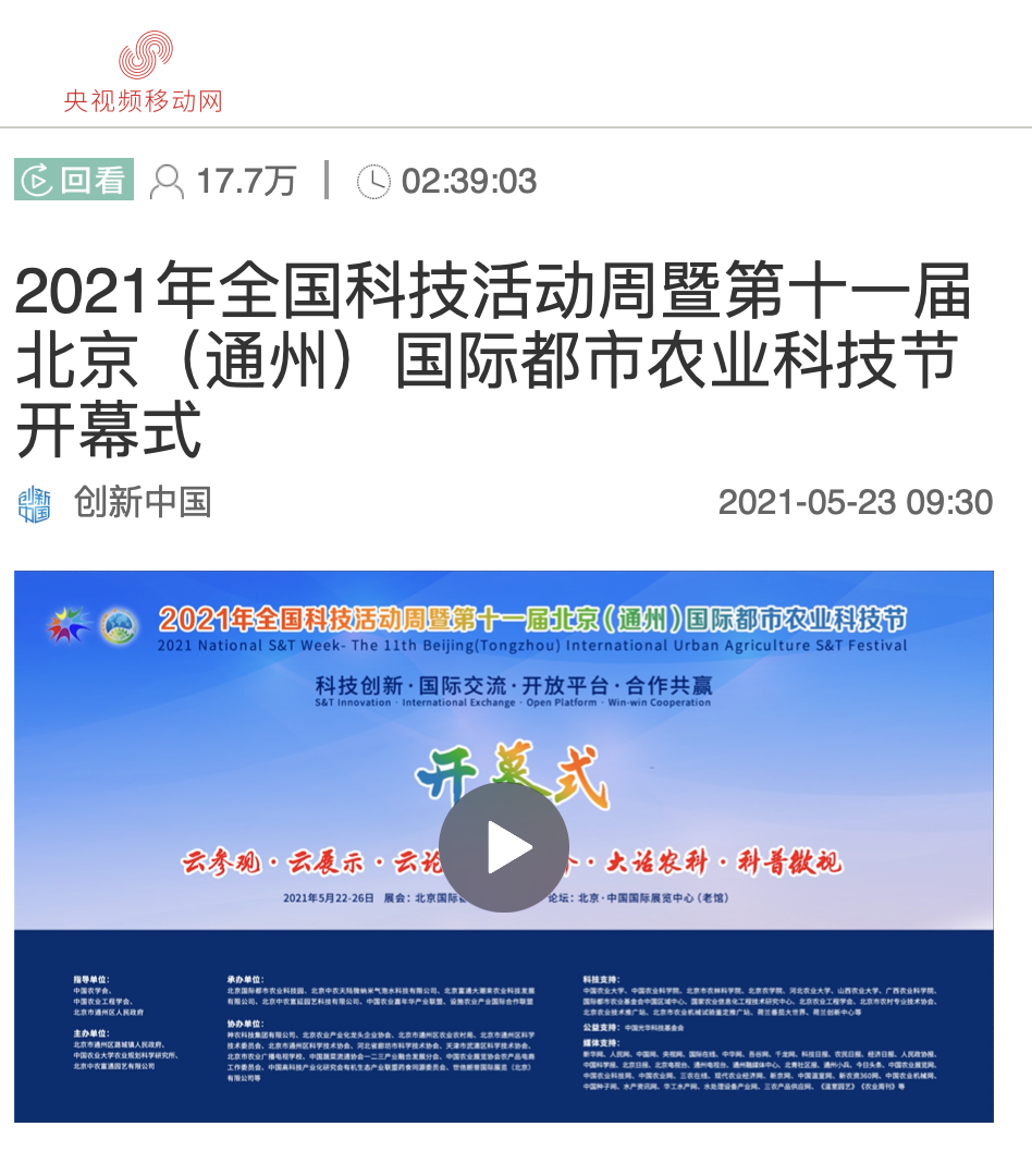 当前,我国已开启全面建设社会主义现代化国家新征程,“三农”工作转入全面推进乡村振兴、加快农业农村现代化新阶段。为进一步促进科技创新在农业农村领域的应用,加强现代农业产业技术体系建设,加快科研成果转化推广,推进新思维、新理念、新业态、新模式、新技术、新设施、新设备、新品种落地,增强科技对都市农业的服务功能,5月23日上午,2021年全国科技活动周暨第十一届北京(通州)国际都市农业科技节”(以下简称科技节)在北京国际都市农业科技园隆重开幕!