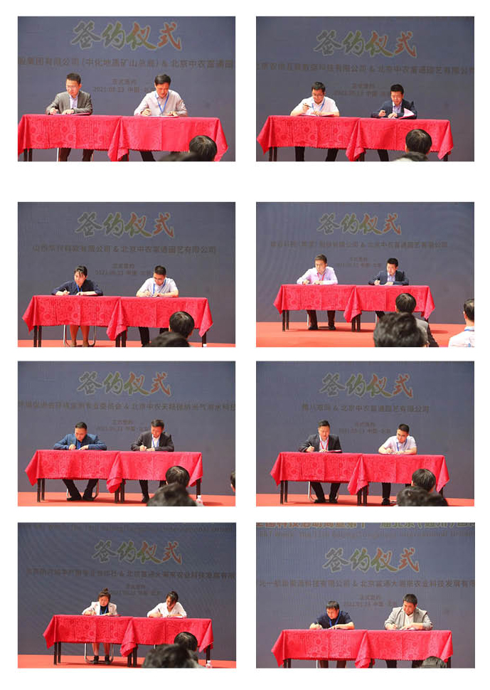 中化明达控股集团有限公司(中化地质矿山总局) 、北京农信互联数据科技有限公司、太原诚迈科技有限公司、山西华兴科软有限公司、猪八戒网分别与北京中农富通园艺有限公司签署了合作协议。