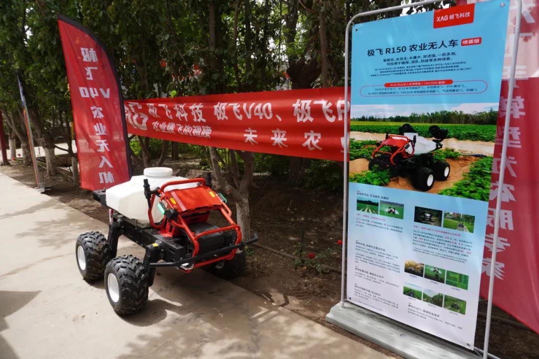 在现场,来自极飞科技的农业无人车(喷雾版)也吸引了大家的注意,记者了解到,该无人车是全球首个量产的农业无人车平台,可适应多地形作业,应用于农林保值、防疫消杀等多种场景。