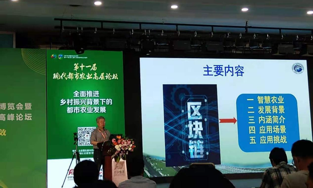 在主题报告环节,中国农业科学院农业环境与可持续发展研究所研究员、中国农学会计算机应用分会副主任委员孙忠富作了《智慧农业背景下区块链应用展望》的主题报告,重点介绍了智慧农业背景下区块链未来在农业大数据、农业物联网、云计算、人工智能、质量追溯等农业领域的广泛应用,并以其安全、透明、难篡改等特性为智慧农业保驾护航。